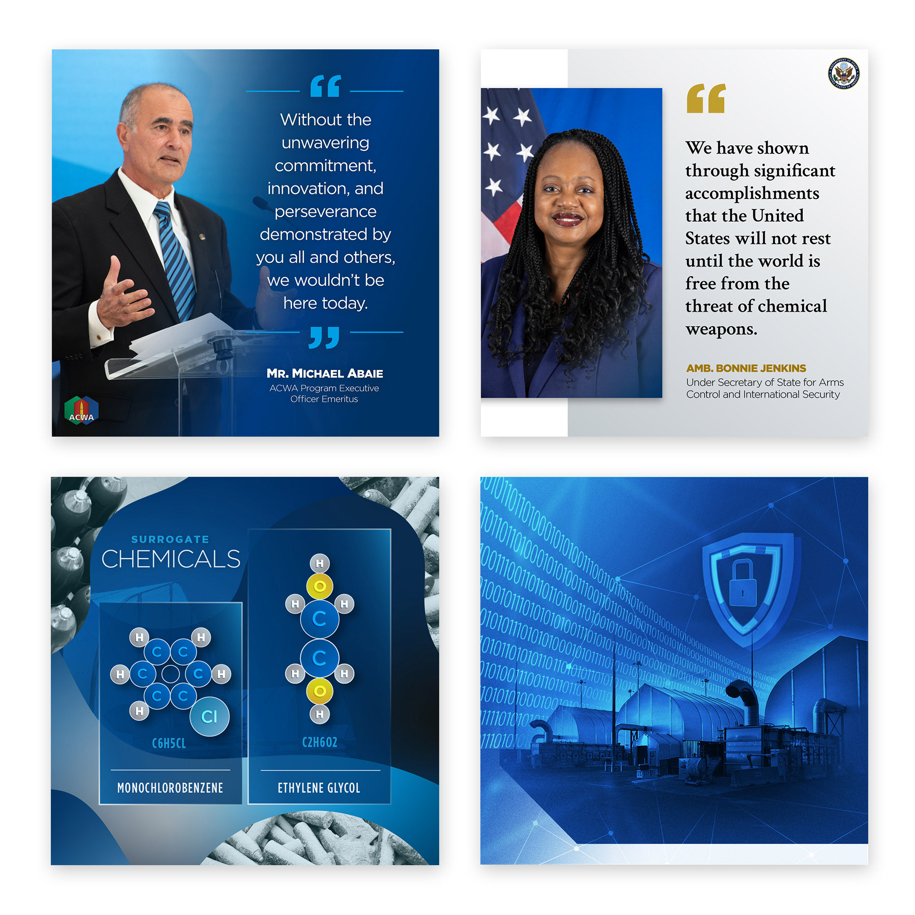 As lead design support for the U.S. Army's ACWA Public Affairs office, Joe developed digital and print products to highlight mission progress. These products included brochures, event collateral, exhibit displays, logos, infographics, illustrations, 3D assets and social media graphics. His position was responsible for determining the program's visual brand and coordinating design efforts by the graphic design team.